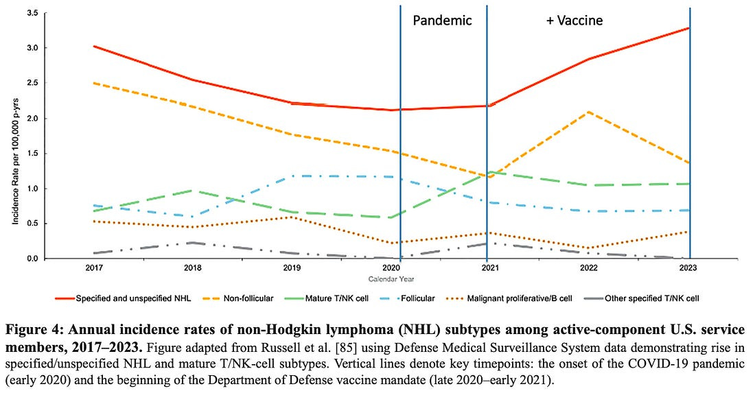 Longitudinal surveillance data documented a post-2021 increase in T/NK-cell lymphomas coinciding with the transition from the pre-pandemic period to near-universal COVID-19 vaccination in this highly structured population.